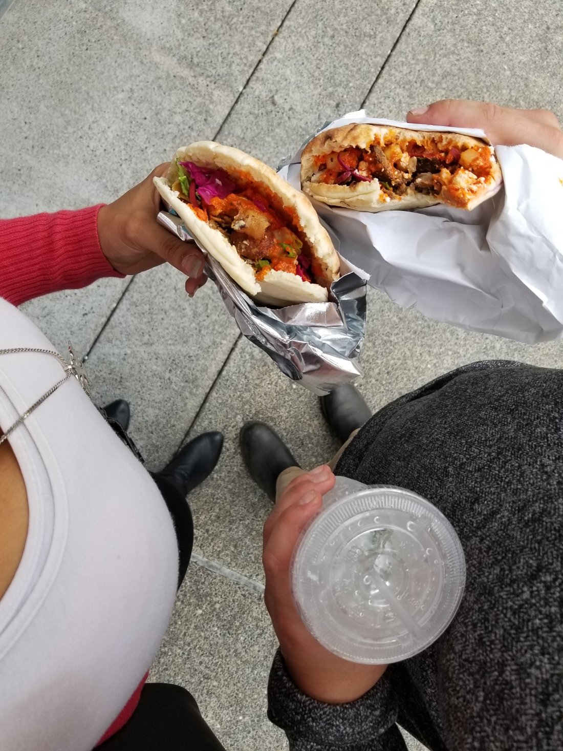 Our alone time had arrived, and instead of going to sit down for dinner, we chose to grab some handheld pitas from a Mediterranean restaurant, Baba’s. Mmmmm!
