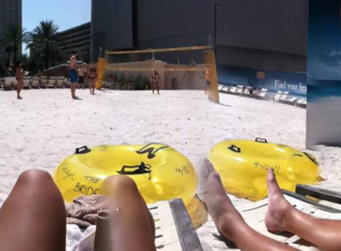 The next day, with our almost 2 year old daughter, and our loved ones all around, we enjoyed relaxing on our labeled floaties..we marked them “The Bride” and “The Groom” in sharpie marker of course..💛 and soaked up the sun!