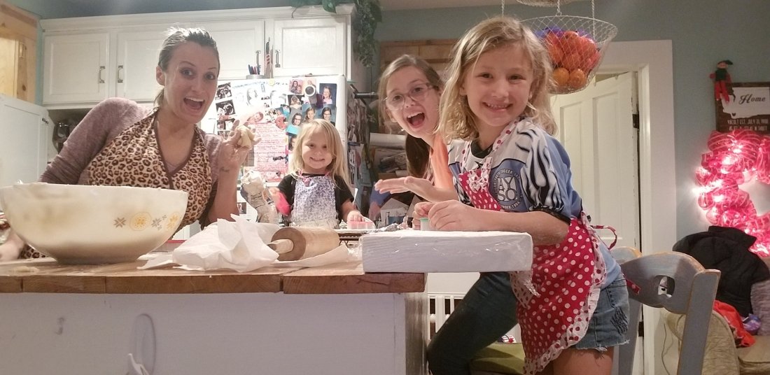 Then, baking together to prepare for our guests.