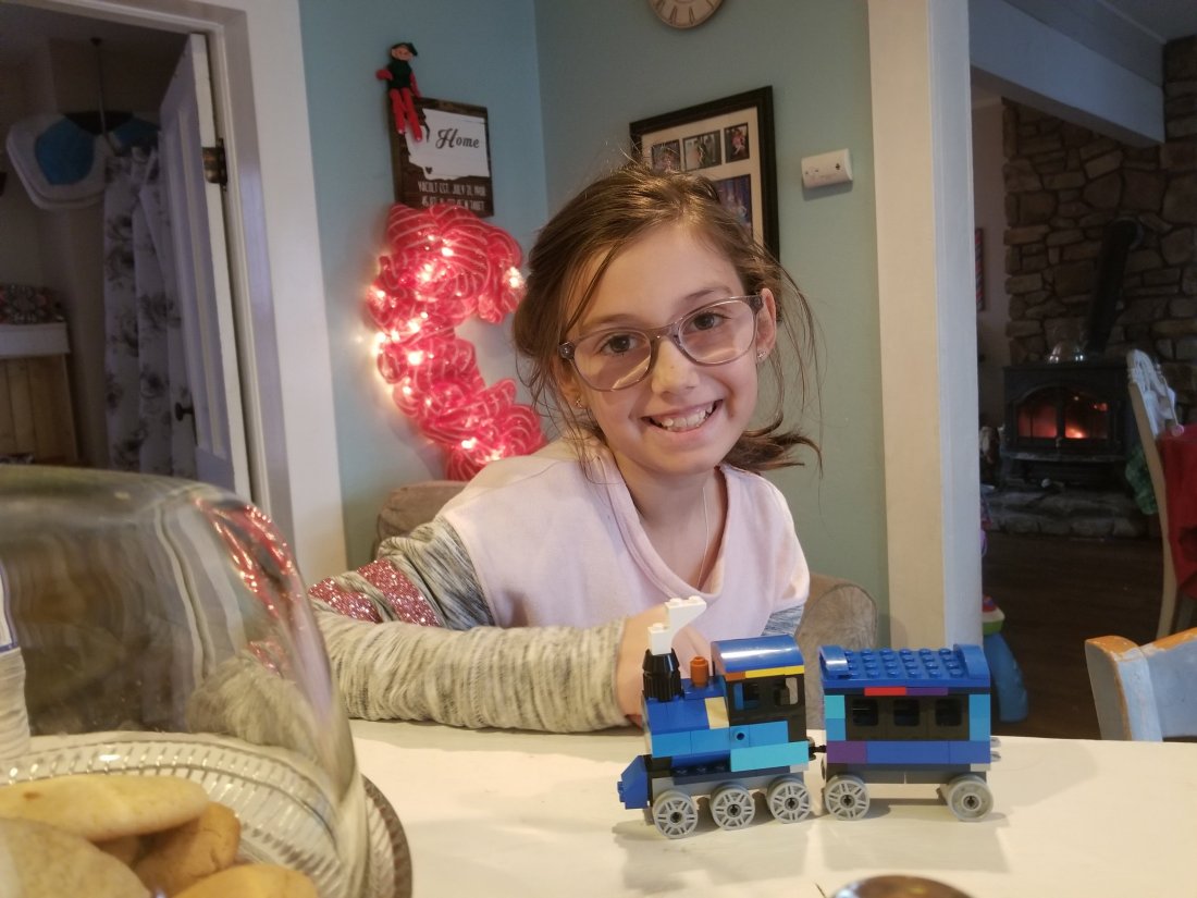 Kylie loved her first set of legos! She immediately made herself a cute little train.
