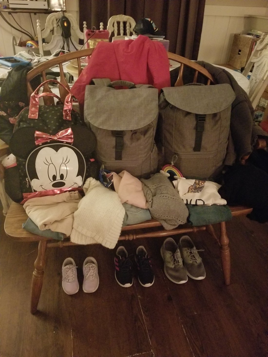 - The girl’s bagsβ€΅οΈ (with outfits out and ready for flight) All of their items stored neatly inside.