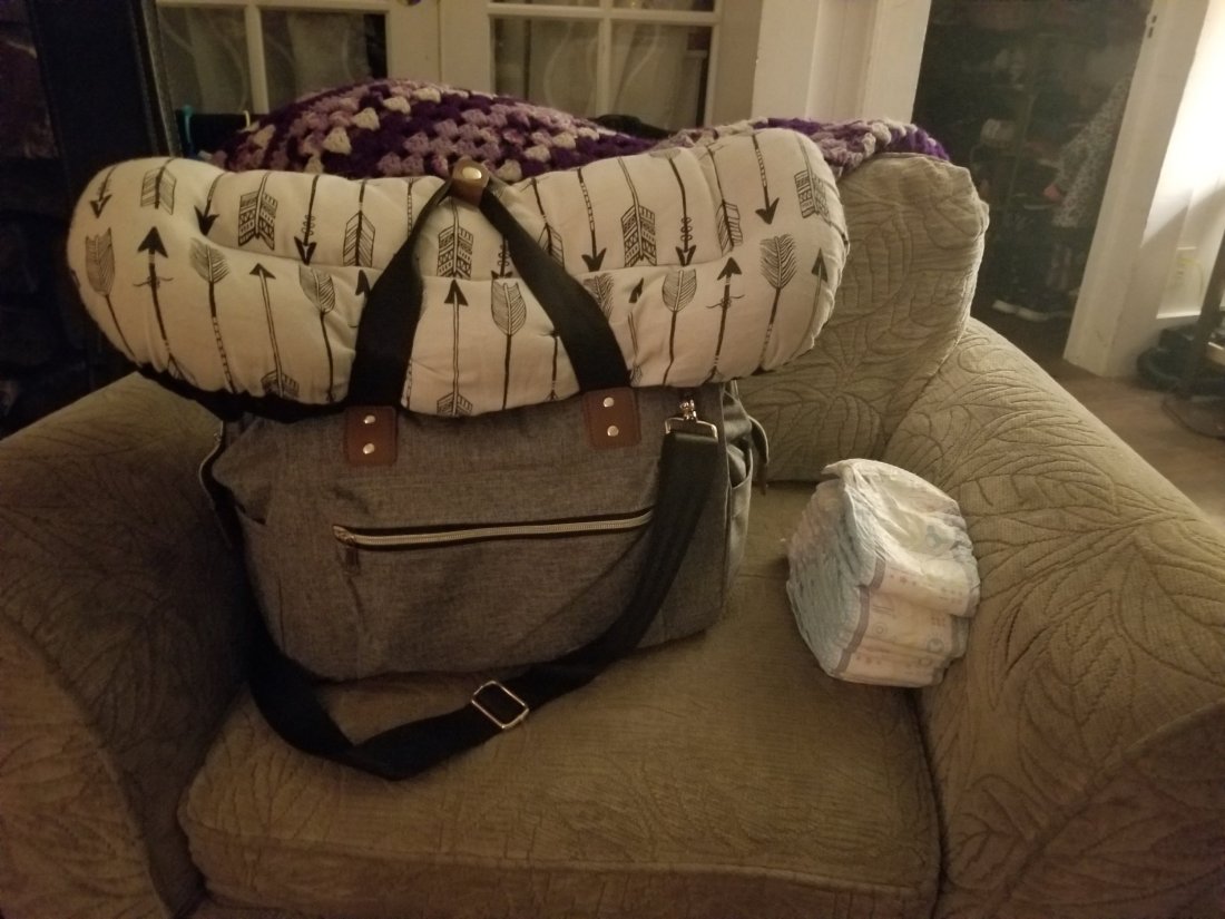 - Diaper bag ‡οΈ(with babynest rolled and buckled in the straps) This worked so well, I couldn’t have been happier with this online purchase. The crossbody strap made it easy to carry with our backpacks, and again.. the multiple pockets inside with the easy open top made organization much easier. This one is currently unavailable, but a very close version can be found here.