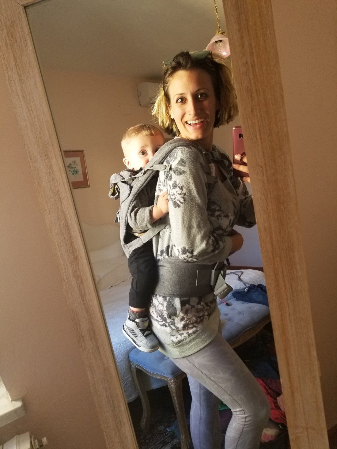 When we are exploring, he is on my back and enjoys being able to hold onto my shoulders and look around, but when we need to carry all of our things with us, it’s easier to have him in the front.